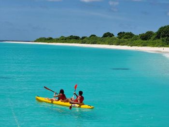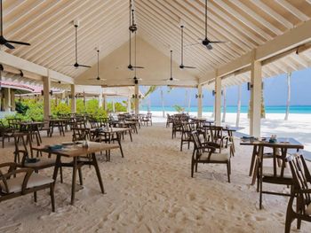 Отель подходит для тихого и спокойного отдыха. Детей - единицы, так как совершенно нет никаких вечерних развлечений, нет никакой анимации. Это позволяет постоянно находиться в тишине и гармонии. Остров довольно большой. 1.5 часа пешком вокруг острова. Везде песок ,в том числе и на полу в ресторане, поэтому обувь можно спокойно не надевать, максимум обычные шлепки. Мы 2 недели ходили везде босиком. Для девушек - туфли, босоножки, вечерние платья, наряды и т.п. спокойно можно не брать - их просто некуда будет надеть. Максимум вечером в бар, но до него придется также идти по песку. На острове всего около 40 домиков, поэтому народу немного. Питание в принципе достойное. На завтрак готовят яичницу, жарят вафли, оладышки. Также имеется стандартный набор - хлопья, сосиски, бекон и т.п. На обед и ужин готовят на гриле рыбу, креветки, мясо, курицу. Плюс к этому есть гарниры и еще также в открывающихся лотках курица/рыба/мясо в соусах. Есть салаты. Каждый вечер дополнительно тематический вечер - мексиканский, итальянский, азиатский..... Фрукты - яблоки, апельсины, бананы, арбуз, папайя, ананс, маракуйя. Из-за того, что народу не очень много, разнообразия еды достаточно, но не как в больших отелях.