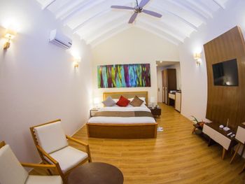 Очень хороший вариант цена качество. Всё включено интересно будет всем, кто пьёт крепкие напитки, коктейли и пиво. Вино домашнее, из пакетиков. Шампанское никакое не входит. Кофе в номере и бар тоже во все включено не входит. На разницу в 50 долларов можно выбрать пару бутылок норманого вина. Или шампанское. Кухня вполне достойная. На обед и ужин делают барбекю мясо рыба морепродукты. Много кари, индийских блюд. Овощи и фрукты. Несколько вариантов десертов. Цены на алкоголь меньше чем в отелях 5🌟. Вино и шампанское от 24 долларов. Вход в море идеальный. И глубина! По животу кораллы на царапают. Очень красивый бассейн, там же бар, там же закаты. Никаких детей, музыки, шума. Очень спокойный остров, с хорошей ценой и комфортом. Уборка номера, территории без нареканий. Виллы до номера 120 с идеальным большим пляжем. Но где-то 50-70 метров от моря. Виллы 120-125 очень приватные, до моря 5-10 метров.