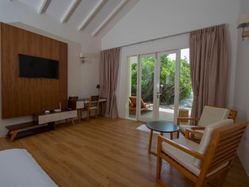 Красивый зелёный остров, с большим количеством зарослей главным образом в середине острова, достаточно большой, чтобы можно было прогуляться. Отличный песчаный пляж, на котором расположены номера, очень хорошо подходит для любителей плавать, отливы не сильно заметны и не мешают плаванию. Wi-Fi есть в номере, но крайне медленный. Но есть и очень существенные минусы. Вероятно, в связи с большим количеством зарослей есть не особо заметные мошки. Не сильно заметны до тех пор, пока мы не оказались искусаны, причем все с разной интенсивностью, меня искусали в один из дней (точнее вечеров) просто «с ног до головы». Укусы крайне неприятные, сильно отекают и вызывают сильный зуд. Обработку острова проводят, но не регулярно и как-то выборочно – то возле номеров (где-то раз в 3 дня), то за номерами ближе в середине острова, когда зелёные насаждения около номеров остаются не захваченными. Второе разочарование было связано с рифом. Такого скудного рифа мы еще не видели за все время отдыха на Мальдивах, а нам есть с чем сравнить. Около номеров рифа нет совсем, он расположен на противоположной стороне острова, но зрелище довольно печальное. Живых кораллов практически нет, видимость под водой тоже оставляет желать лучшего, вероятно за счет взболтанного песка. Несмотря на то, что нам встретилась черепаха, акулы и скат, подводный мир не идет ни в какое сравнение с другими островными отелями. Информация с обозначенными местами для снорклинга на картах отеля противоречива и отличается на разных картах и схемах. Но в целом вокруг острова нет ни одного стоящего участка.