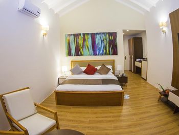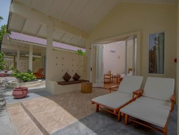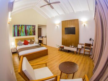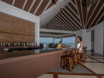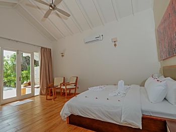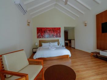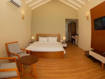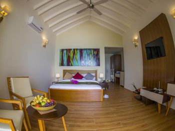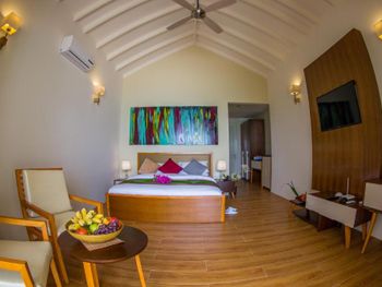 Очень хороший вариант цена качество. Всё включено интересно будет всем, кто пьёт крепкие напитки, коктейли и пиво. Вино домашнее, из пакетиков. Шампанское никакое не входит. Кофе в номере и бар тоже во все включено не входит. На разницу в 50 долларов можно выбрать пару бутылок норманого вина. Или шампанское. Кухня вполне достойная. На обед и ужин делают барбекю мясо рыба морепродукты. Много кари, индийских блюд. Овощи и фрукты. Несколько вариантов десертов. Цены на алкоголь меньше чем в отелях 5🌟. Вино и шампанское от 24 долларов. Вход в море идеальный. И глубина! По животу кораллы на царапают. Очень красивый бассейн, там же бар, там же закаты. Никаких детей, музыки, шума. Очень спокойный остров, с хорошей ценой и комфортом. Уборка номера, территории без нареканий. Виллы до номера 120 с идеальным большим пляжем. Но где-то 50-70 метров от моря. Виллы 120-125 очень приватные, до моря 5-10 метров.