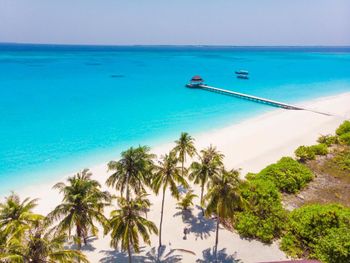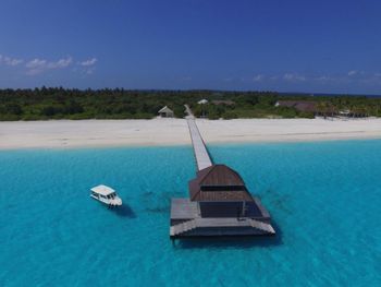 Трансфер организован чётко.Большой, зеленый остров.Южная половина состоит из непролазных джунглей через которые проложено несколько грунтовых дорог.В джунглях обитают птицы, летучие собаки и игуаны.Большинство посетителей курорта французы. Комфортабельные бунгало с высоким потолком и с душевой зоной под открытым небом.Хорошая кровать.Устойчивый Вай-Фай после 21:00.Всегда хороший напор горячей воды.Делюксы отличается от Стандартов только наличием ванны, но первые расположены лучше благодаря грамотной планировке предпляжной территории обеспечивающей необходимую приватность.Поскольку в Делюксах нет боковых окон они стоят друг к другу достаточно плотно и между ними нет прохода, а есть только кусты, которые плотной посадкой продолжаются на 40 шагов в сторону пляжа.То есть, каждое бунгало Делюкс получает приватный выход к пляжу в плотном зелёном коридоре кустарников и деревьев.В результате, никто постоянно не будет мотаться перед крыльцом вашего бунгало, а это дорогого стоит! В отличие от Делюксов, возле многих Стандартов плита старого рифа находится очень близко к пляжу, что затрудняет купание, но лубина везде позволяет купаться в любое время.Всюду по пляжу можно ходить босиком.Шведский стол хороший.Протяжённый риф расположен между северным и юго-восточным побережьем и на юго-востоке имеет обширный мелководный участок выдающийся далеко за пределы острова и переходящий в лагуну.Вода мутноватая.Течений в сторону океана не замечено.Это типичный мальдивский риф, то есть, конечно не коралловый сад, но отдельных колоний разнообразных кораллов не мало,Есть различные иглокожие: морские ежи, огурцы, лилии и звёзды.Встречаются небольшие кустики актиний двух видов, осьминоги и лобстеры.Много видов костистых рыб.Из крупняка встретил три вида акул и черепах.Ночью волны в изобилии выбрасывают на пляж крупный светящийся планктон.Москитов мало,- спрея вполне достаточно. Песчаные мухи не замечены.На снорклинг-экскурсию возят к заброшенному острову-курорту Алиду. Вода там тоже мутновата.