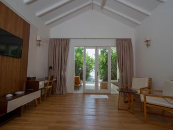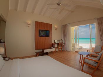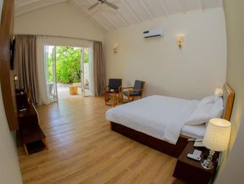 Красивый зелёный остров, с большим количеством зарослей главным образом в середине острова, достаточно большой, чтобы можно было прогуляться. Отличный песчаный пляж, на котором расположены номера, очень хорошо подходит для любителей плавать, отливы не сильно заметны и не мешают плаванию. Wi-Fi есть в номере, но крайне медленный. Но есть и очень существенные минусы. Вероятно, в связи с большим количеством зарослей есть не особо заметные мошки. Не сильно заметны до тех пор, пока мы не оказались искусаны, причем все с разной интенсивностью, меня искусали в один из дней (точнее вечеров) просто «с ног до головы». Укусы крайне неприятные, сильно отекают и вызывают сильный зуд. Обработку острова проводят, но не регулярно и как-то выборочно – то возле номеров (где-то раз в 3 дня), то за номерами ближе в середине острова, когда зелёные насаждения около номеров остаются не захваченными. Второе разочарование было связано с рифом. Такого скудного рифа мы еще не видели за все время отдыха на Мальдивах, а нам есть с чем сравнить. Около номеров рифа нет совсем, он расположен на противоположной стороне острова, но зрелище довольно печальное. Живых кораллов практически нет, видимость под водой тоже оставляет желать лучшего, вероятно за счет взболтанного песка. Несмотря на то, что нам встретилась черепаха, акулы и скат, подводный мир не идет ни в какое сравнение с другими островными отелями. Информация с обозначенными местами для снорклинга на картах отеля противоречива и отличается на разных картах и схемах. Но в целом вокруг острова нет ни одного стоящего участка.