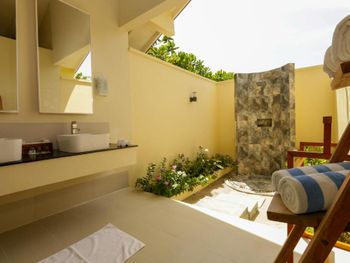 В каждом бунгало есть терраса, кушетки, телевизор с плоским экраном, принадлежности для чая/кофе и собственный душ на открытом воздухе. Мы также предоставляем мини-бар в номере с пакетом питания «все включено».