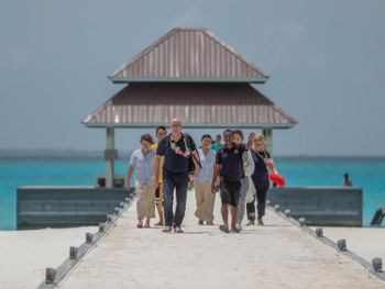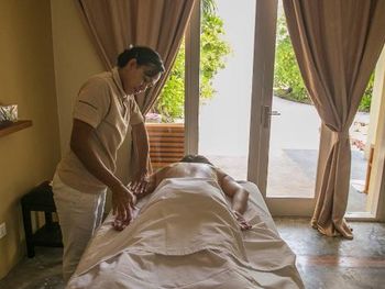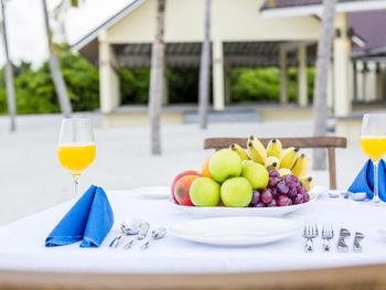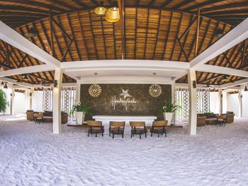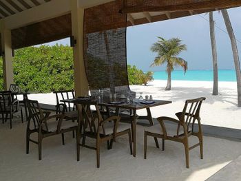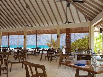 Отель подходит для тихого и спокойного отдыха. Детей - единицы, так как совершенно нет никаких вечерних развлечений, нет никакой анимации. Это позволяет постоянно находиться в тишине и гармонии. Остров довольно большой. 1.5 часа пешком вокруг острова. Везде песок ,в том числе и на полу в ресторане, поэтому обувь можно спокойно не надевать, максимум обычные шлепки. Мы 2 недели ходили везде босиком. Для девушек - туфли, босоножки, вечерние платья, наряды и т.п. спокойно можно не брать - их просто некуда будет надеть. Максимум вечером в бар, но до него придется также идти по песку. На острове всего около 40 домиков, поэтому народу немного. Питание в принципе достойное. На завтрак готовят яичницу, жарят вафли, оладышки. Также имеется стандартный набор - хлопья, сосиски, бекон и т.п. На обед и ужин готовят на гриле рыбу, креветки, мясо, курицу. Плюс к этому есть гарниры и еще также в открывающихся лотках курица/рыба/мясо в соусах. Есть салаты. Каждый вечер дополнительно тематический вечер - мексиканский, итальянский, азиатский..... Фрукты - яблоки, апельсины, бананы, арбуз, папайя, ананс, маракуйя. Из-за того, что народу не очень много, разнообразия еды достаточно, но не как в больших отелях. В баре стандартный набор напитков - ром, виски, джин, водка, вино, пиво, мартини, соки - входит в систему все вкл. Из этого набора можно попросить сделать любой коктейль. Снорклинг возможен с пирса - довольно много разной рыбы, иногда можно увидеть черепах, скатов, но не всегда. Трансфер - местные авиалинии меняют расписание каждый день. Под прилет в Мале в районе 9-10 утра всегда есть рейс прямой (на момент написания отзыва) в районе 12.30, ожидание недолгое плюс отель предоставляет бесплатно ожидание в зале повышенного комфорта с закусками и напитками (безалкогольными). Но это только по дороге на остров. На обратном пути такого нет. Трансфер обратно сложнее, под вылет с Мале в 15 иногда забирают в 3 ночи, иногда в 8.30 утра. Под вылет в 11 утра из Мале забирают в 3 ночи.
