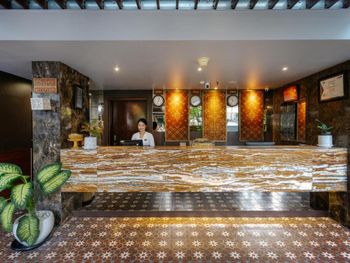Сначала нас заселили в убитый номер на втором этаже. Нашему возмущению не было предела. Но затем переселили. Спустя сутки. Так как день в день свободных номеров не было. Номер, в который нас поселили сначала был не только убитым (ужасная ржавая сантехника, дыры и прокуры на шторах) но и с запахом будто там кто-то простился с жизнью. Окна в этом номере выходили в стену очень плотно стоящего рядом другого отеля. Соответственно солнечного света там не было вообще.