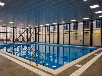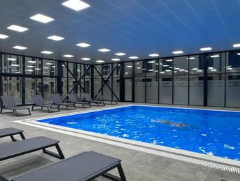 Приятный и просторный бассейн и сауна. Стильный дизайн. Рядом в пешеходной доступности все необходимые магазины, аптеки.