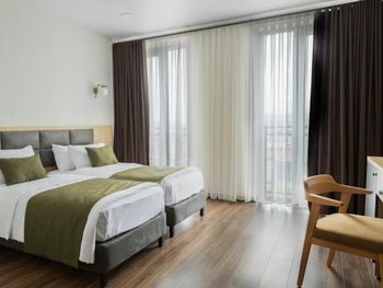 Мы недовольны вашими услугами, в гостинице не было вайфая, и из-за этого мы упустили большую сумму, и не смогли работать так как нам нужен был интернет, мы работаем онлайн в режиме. Мы хотели отдохнуть как полагается и поработать в спокойной атмосфере но нам этого было не дано! Ни какого комфорта, при этом у вас был холодильник полностью пустой, и после 11 часов я даже не смогла заказать обычную Кока-Колу так как уже ресторан был закрыт. Что касается завтрака вся еда была непригодна к применению, потому что вся еда была холодная.