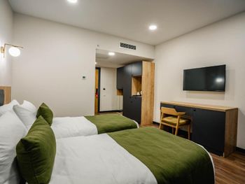 Отличный современный отель. Удобный семейный номер, всё оборудование и здание свежие. Есть спортзал и бассейн. Хороший завтрак европейского формата.