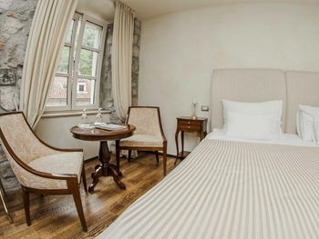 Отель высокого уровня находится в старом городе, куда не заезжают машины, но есть рядом парковка бесплатная для гостей отеля. Удобная широкая кровать, просторный душ. Окна выходили на гору и улочку с рестораном гостиницы где до поздна играл пианист!! Вежливый персонал. В цену входит завтрак с вариантами на выбор. Рекомендую.