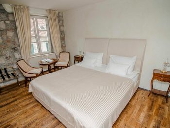 прекрасный уютный отельчик в Старом Городе. если вам хочется исследовать именно эту часть Котора, то это лучшее расположение, которое можно представить. понравился отзывчивый персонал, говорящий по-английски, прекрасный завтрак по меню (с ним надо разобраться, но это не так сложно), а также в самом номере было очень тепло, были всякие тапочки/халаты/средства гигиены. понравилось обилие розеток и вид с маленького балкончика на море и яхты. также перед самими окнами проходит участок старой крепостной стены, по которой периодически проходят туристы) фактически перед вашими окнами, но шторы решают этот вопрос.
