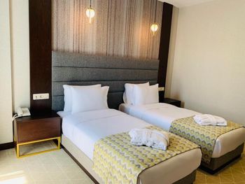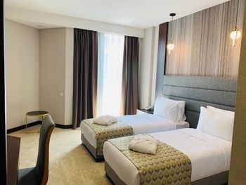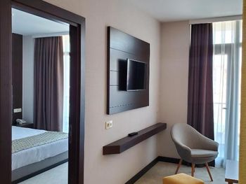 Добрый день. Отдыхали с женой в мае прошлого года и нам очень понравилось. В этом году приехали с двумя сыновьями. Изначально просили номера рядом. Но не получилось. Во всем остальном не было претензий. Кому нужен отличный номер с видом на море это 807 он достался сыновьям это 8 этаж. там раздельные кровати. Нам достался номер на третьем этаже . Мы хотели повыше но ничего страшного. Во всем остальном только плюсы. Нам дали очень ранее заселение в 11 утра мы уже были в номере. И позднее выселение до 14.30. гостиница находится немного далековато от центра но близко к морю и дельфинарий. Рядом куча ресторанов магазинов как супермаркеты так и овощные. Обменник рядом с гостиницей. Очень чисто. Отличный спа сауна. Завтраки не вааааау но голодными никто не уходил. Персонал супер. Все очень дружелюбные. Просили бокалы и штопор все дали на стойке рецепции. Уборка меняли мусор мыло туалетная бумага вода две бутылки полотенца кофе чай. Нареканий нет. Обязательно приедем в следующем году!!!! И только к вам в гостиницу!!!! Спасибо большое всему персоналу удачи вам вы замечательные. С уважением семья Алексеевых