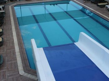 Бассейн небольшой. Даже не купались, не чистится, есть опасность подхватить что нибудь.