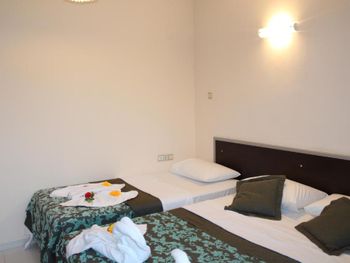 В целом всё было неплохо, мы понимали куда ехали и зачем. Еда была неплохой, довольно разнообразной, напитки безалкогольные были всегда в доступе. Алкоголь только вино белое/красное неограниченное количество, однако вкус оставляет желать лучшего, за эти деньги норм. Пару раз выключали свет, было не критично. Рядом магазин, всё что необходимо было и даже больше. В шаговой доступности различные местные тур агенства. Из развлечений в отеле была своеобразная громкая музыка, без анимации (это тоже плюс). Персонал по большей части мало мальски говорят по русски, по английски оч слабо, с некоторыми сложно договориться о чем либо. Уборка была раз в 2-3 дня. Терпимо, потому что не дорого. В остальном треш. Второй раз не поедем. Турция в целом разочаровала.