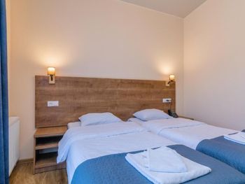 (P/S в такой номер заезжали гости на след. день на 1 ночь скорее всего проездом, мы же остановились на 2 ночи , приехали посмотреть город, просила администратора поменять номера, но он не согласился, потому что, те гости попросили номер с 1 кроватью, а я нет. Хотя нам потом сдвинули кровать и можно было сделать тоже самое. Стоимость номеров при этом у нас одинаковая ). Жаль, что не пошли на встречу, и поставили в приоритет тех гостей кто был всего на 1 ночь. Насладиться присутствием в номере не удалось вообще. И номер дали первый у лестницы+ слышимость просто ужасная. Прошу обратить внимание, директора, и все-таки тем гостям, кто приезжает больше, чем на 1 ночь создавать более комфортные условия проживания.