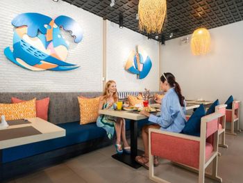 В кафе IKON, которое работает по системе «шведский стол», подают разнообразные блюда тайской и европейской кухни. В ресторане Ombre с зоной для отдыха на открытом воздухе можно заказать блюда тайской и европейской кухни по меню.