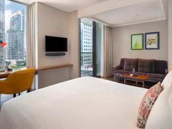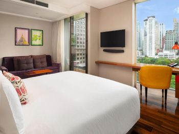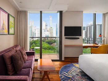Прекрасный вид на Бангкок. Чистый отель в стиле лофт.Удобное место расположения, вежливый персонал.