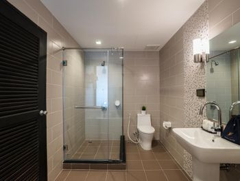 Рядом на углу расположен 7-Eleven 30-40 метров от отеля, метров в 700 расположен терминал 21 , не доходя до него большой маркет Лотус. Тихий район , нету суеты как на первой второй линии и все рядом