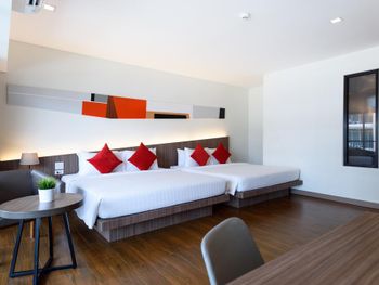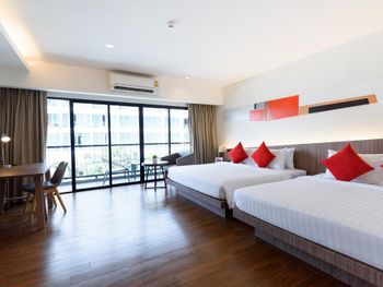 Отель расположен недалеко от тц терминал, можно дойти пешком, можно доехать на тук туке, улица чистая по сравнению с самым центром. Был номер делюкс на 5-ом этаже с видом на бассейн, просили замену на этаж ниже по возможности, так как на балконе перекрывали вид перекрытия корпуса (своеобразный дизайн такой), посмотрели номера этажом ниже и решили остаться в своём). В нашем номере есть все необходимое и даже мини кухня с микроволновой, столовыми приборами, раковиной. Проживанием довольны, персонал идёт навстречу, завтраки оплачивали на месте-150 бат с человека, выбор не огромный, но достаточно и вкусно.