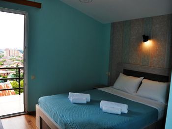 Карта заведет вас не туда) Добираться до отеля лучше всего на машине, потому что пешком далеко и неудобно. Когда мы приехали, то параллельная улица была перекопана (и ещё несколько улиц), поэтому мы искали дорогу около часа. Пошли пешком и какие-то добрые люди провели нас вверх через свои участки, чтобы мы далеко не обходили. Грузинское гостеприимство! Сам отель находится как бы на пригорочке, поэтому если вам достанется номер с балконом - вид будет на город и вечером можно посидеть на балкончике с видом на огни. Номера совсем не большие, типа экодизайна.