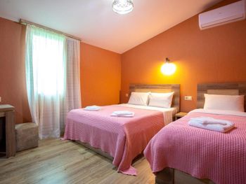 Неудачное расположение: пешая прогулка возможна только в сухую погоду или в галошах, парковка хорошая. Тесный номер, во всяком случае на троих номер 101 на первом этаже, зато с огромным балконом. За две ночи проживания ни разу не было уборки номера. Завтрак очень посредственный