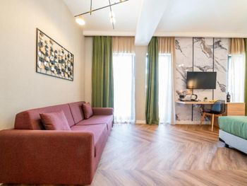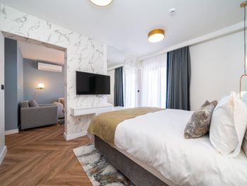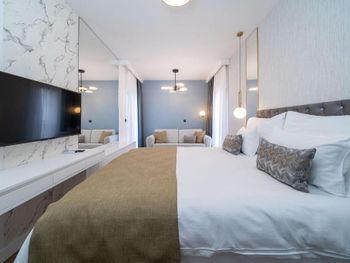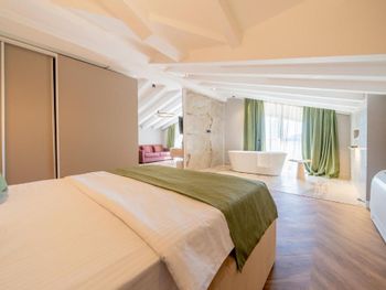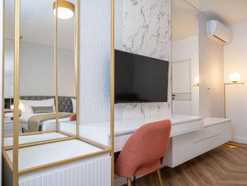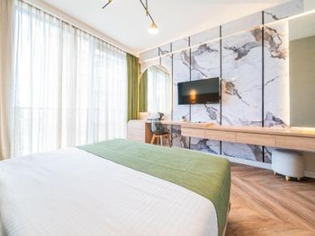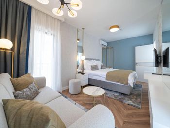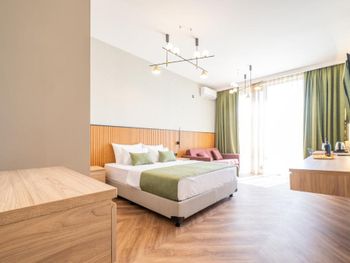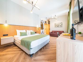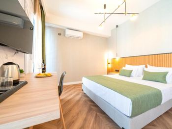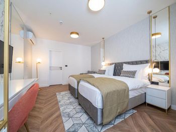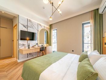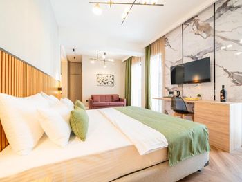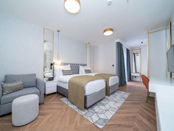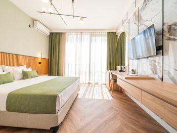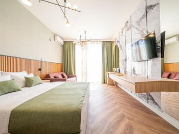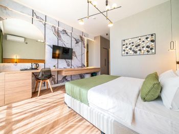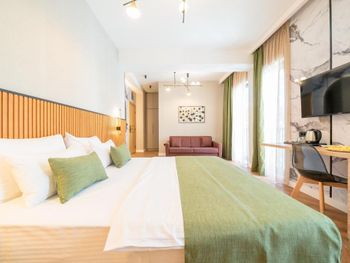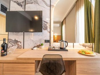 Останавливались в данном отеле в марте на 5 ночей. Бронировали 2 двухместных номера. Расположение отеля хорошее, приветливый персонал, теплый басейн, джакузи на крыше за отдельную плату( 2 часа бесплатно). Номера: один был довольно просторный с гардеропной, чистый, ежедневная уборка и смена полотенец, халаты, есть холодильник, чайник и чай. В душе мыло шампунь и гель, пополнялся ежедневно. Второй номер был меньше но не критично, вместо гардеропной был шкаф, в котором стоял Холодильник ( не работал)и к нему приставлен диван, который не давал открыть дверцы в шкафу? . В стоимость включены завтраки, голодными не останитесь. Парковка у отеля бесплатная, интернет работал отлично.
