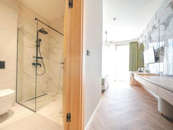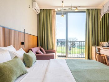 Шла стройка напротив, с утра слышно.В двух номерах присутствовал запах сырости который не проходил, в одном номере невозможно было открыть шкаф в котором был еще не рабочий холодильник. Халаты в одном номере были без поясов. Завтрак колбаса балык и хамон были зветренные каждый день, салаты на вид тоже заветренные. При выезде взяли 13.50 евро, мы не поняли за что, возможно за воду которая была в холодильнике. Выезжали рано не стали выяснять. По замечаниям на ресепшен не обращались, уверена исправили бы, для нас было не критично, пишу для информации