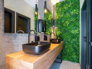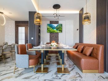 В сауне температура очень маленькая. В двухкомнатном номере нету смежных дверей, а торчат какие-то непонятные бордюры , которые нужно постоянно перепрыгивать...