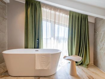 Отличный бассейн, удобные лежаки. Джакузи на крыше с видом на горы и море. Чистый, уютный номер.