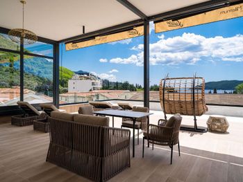 Завтрак был всегда вкусный. Расположение в тихом месте, но далеко от старого города. До старого города пешком около 30 минут по набережной. До пляжа идти около 3-5 минут. Вода прозрачная. До Mogren beach от отеля пешком около 40 минут. Бассейн в отеле закрытый, но очень комфортный: мало людей в течение дня, находится рядом с сауной и турецкой баней. В номерах есть телевизор с YouTube, Netflix и Amazon Prime. Хорошая шумоизоляция. На верхнем этаже есть терраса с джакузи с видом на город, горы и море. В отеле можно арендовать машину и посмотреть варианты экскурсии по Черногории.