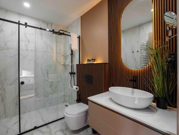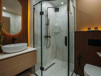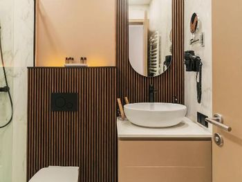 К сожалению в номере была плохая звукоизоляция, тем кто спит чутко, нужны беруши. Очень шумная дорога под окнами и окна не справляются. У нас постоянно текла душевая кабина, поэтому приходилось постоянно после душа вытирать пол полотенцами весь WC. Возможно неправильно монтирована, но это напрягало, каждый раз после душа вытирать пол.