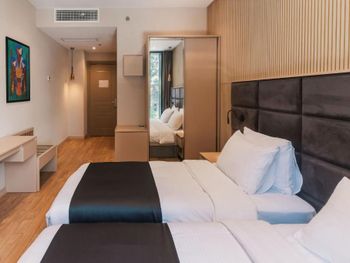 Начнем с того, что в описании номера было указано - терраса, в итоге терраса на 5-м этаже для всех общая. Нам же номер выдали с видом на дерево. Во-вторых, персонал этого отеля не особо дружелюбный, никогда не здоровались ни первыми, ни в ответ. Также не очень старались решить возникшие с номером проблемы. В-третьих, чистота в комнатах оставляет желать лучшего. В первый же вечер обнаружили небольшое количество муравьев, на утро из стало в разы больше. На ресепшене нам пообещали тщательно убраться, но в итоге кроме замены полотенец ничего не сделали. На постельном белье были желтые пятна. Ни разу за четыре дня не пылесосили и тем более не мыли пол в номере, первые два дня меняли полотенца, потом забили и на это. В правилах отеля написано, что замена постельного белья осуществляется каждый третий день пребывания - за 4 дня нам постельное бельё не сменили.