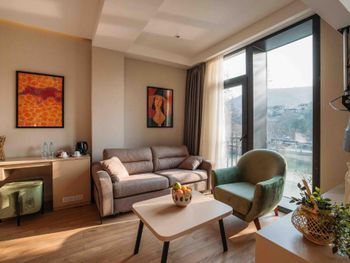Великолепная, чистая, современная гостиница с отличной локацией и доступом к инфраструктуре. Проспект Марджанишвили с магазинами и бутиками в 5 минутах ходьбы. Отличный вид на реку и город,терраса на 5 этаже, а внизу красивая столовая с большими, в пол, окнами и чудесным дизайном. Завтраки разнообразные, очень вкусные и сытные. Номера чистые, оснащённые всем необходимым, в декабре при -1 до +5 тепло благодаря современной системе отопления. Многоуровневый освещением. Звукоизоляция хорошая и не смотря на близость к набережной спалось отлично. Ванная комната выдержана в той же стилистике,удобный душ, функция биде. Удобные матрасы и подушки ежедневная уборка, смена полотенец и гигиенических принадлежностей. Останавливались с дочерью 5 ночей. Очень душевная и чуткая менеджер Натиа и вообще весь стаф готовы решить любой вопрос.