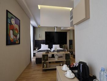 1. Мы прилетели утром, нас разместили раньше положенного времени, сразу как представилась возможность после уборки номера. 2. Локация очень хорошая, в пешей доступности весь центр. 3. Номера большие, к сантехнике претензий нет. 4. Завтраки отличные: сытные, на любой вкус. 5. Очень дружелюбный персонал, в особенности менеджер Натия)