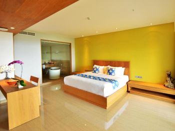 Отдыхали в данном отеле 7 дней. Что могу сказать. С нетерпением ждали отдыха, но не получили того чего хотели. Вот почему. Завтраки: они очень скудные, мне жаль родителей, которые приезжают с детьми. Выбрать нечего. Все 7 дней кушали омлет и пудинг. Все. Остальное либо блюда азиатские и очень острые, либо откровенно не вкусные. Например, это отель японской сети, но японского питания там нет, если не считать роллы с огурцом и морковкой, а также разведённый из сухого порошка суп. Откровенно отель работает исключительно на азиатских продуктах, а они не вкусные. Колбаса, сыр, соки - есть нельзя. Территория: она очень маленькая, ну совсем. Детских площадок нет ни одной, даже какой-то территории для детей тоже нет. Номера: они требуют ремонта, в общем как и весь отель. Качество уборки плохое. Капли от зубной пасты в ванной видимо ещё с момента первых жильцов. За 7 дней белье не сменили ни разу. Полотенца совсем не белые и жутко пахнут хлоркой.Это не минус, но к сведению. Персонал: улыбчив, приветлив, разговорчив. Пожалуй это единственный плюс отеля. Рекомендовать данный отель не могу. За такие деньги, которых он стоит, можно найти лучше. Любую европейскую сеть отелей. Отель находится в 10 минутах езды на такси от Бали коллекшн. Рядом с отелем ничего нет, кроме грязии заброшенных строек. Правда есть супермаркеты, вполне неплохие. Забыла сказать про бассейн. Он небольшой, красивый, но и как весь отель требует ремонта. Облупившаяся плитка, скользкие ступеньки, грязные матрасы. И около бассейна стоит занимательная табличка, что спасателей нет и вы плаваете под свою ответственность:))) Море: его нет, во всяком случае в наш период не было. Все 7 дней был сильный отлив. Это не минус отеля, а природная особенность, но ее тоже надо учитывать. Вернусь ли я на Бали? Нет. Дорого. И за такие деньги есть более цивилизованные места.