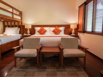 К услугам гостей просторные номера, окруженные пышной тропической растительностью. Номера оформлены в теплых красно-коричневых тонах и обставлены классической деревянной мебелью. В каждом номере есть собственный балкон и большая ванная комната с ванной.