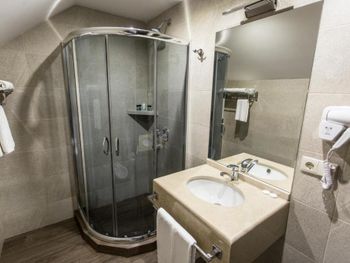 Отель расположен в самом центре старого города, что является одновременно и огромным преимуществом, и большим недостатком. С одной стороны, вы можете пешком за несколько минут попасть в почти любую историческую локацию, что несомненно удобно, но, с другой стороны, в номере очень шумно и практически невозможно отдохнуть. Быть может это мне не повезло, и я получила номер на 2 этаже, что равносильно первому, поскольку вход в отель в полуподвале, к тому же номер с окнами, выходящими на улицу, ведущую на вершину горы со смотровой площадкой и достопримечательностями. И по этой улице день и ночь ходили туристы и ездили машины.... Именно поэтому невозможно было открыть окно, настолько шумно. Впрочем, шумно было и с закрытым окном. Не представляю, как там можно отдыхать в жаркий день, когда открытое окно - необходимость.