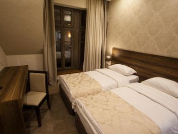 Очень хорошее место, в старом городе, но чуть в стороне, так что не очень шумно. Все близкою. Вид на собор, канатная дорога прямо над окнами. В день приезда девушка на ресепшене помогла нам подъехать на машине к отелю - ей спасибо. Хороший завтрак. Есть все туалетные принадлежности в ванной. Уборка и замена полотенец. Все на приличном уровне, но от этого и цена тоже на уровне Европы, в отличие от остальной Грузии.