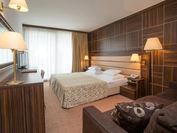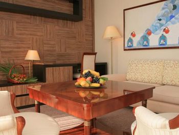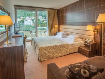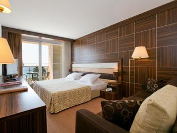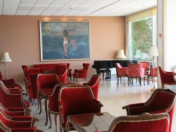Такое впечатление, что лет 20-30 назад отель был просто райским местом, но с тех пор про его достойный вид чуток подзабыли... При отличнейшем расположении и планировке интерьеры номеров и мест общего пользования выглядят как-то очень эклектично и несовременно. Например, в номере шикарный балкон, с хорошей изоляцией от соседей, просторный и достойно экипированный санузел, хорошая площадь. При этом мебель и стеновая панель сделаны из какого-то ужасно дешевого и безвкусного ламината, ковролин на полу сильно подзатерт...