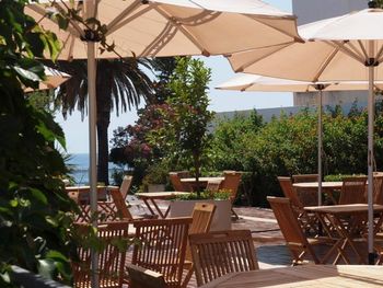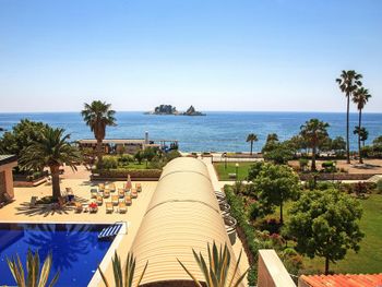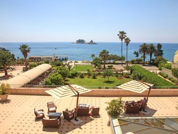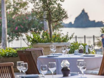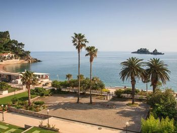 Близость к пляжу и вид из окна. На пляже, если вы из отеля, можно за 8 евро взять 2 лежака, зонт и полотенца( полотенца прямо требуйте, их не всегда предлагают), если вы не из отеля-то стоимость будет 12 евро. Налево из отеля пройдитесь обязательно через туннели, там такая красота.