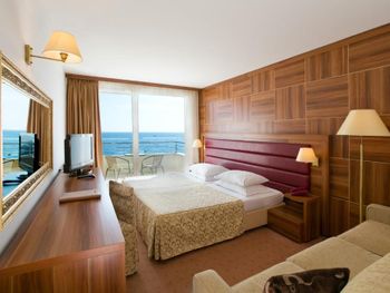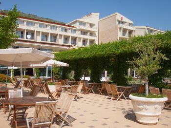 Отель очень хороший, завтраки и ужины вкусные, разнообразные. Выход из отеля на променад, и сразу за ним море. Можно считать что он на первой линии. Отдыхом довольны