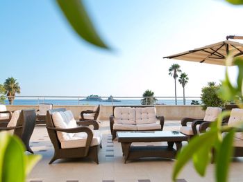 Пляж отеля маленький, всем гостям лежаков не хватает. Поэтому приходить нужно рано утром и занимать место. При этом, несмотря на высокую стоимость проживания, пляж в стоимость отеля не включён и нужно на пляже дополнительно оплачивать 15 евро за комплект лежаков. Также не было халатов в номере, что для 4+ довольно необычно...