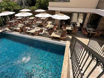 Отель прекрасный, очень чистый, комнаты всегда убирались, очень хороший бассейн и территория при бассейне (лежаки, зонты), очень хорошие завтраки (в составе было все, что необходимо, включая очень вкусную и разнообразную выпечку, фрукты, овощные салаты). Действительно было очень-очень хорошо, персонал был всегда приветлив, тут же откликался на любую просьбу
