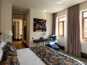 Не понравилось: нам достался не тот номер, который указан на фотографиях, хотя мы ПЕРЕПЛАТИЛИ именно за него. По факту наш номер был с очень скромным балконом без вида, мягко говоря, и с обычными окнами, а не полукруглыми, как на фотографиях. Также на фотографиях были резные красивые навесы, большое растение и красивый вид на другую часть города. На наш вопрос ответили, что тот номер занят. Тогда почему на фотографиях был тот номер? Неясно за что мы заплатили больше.