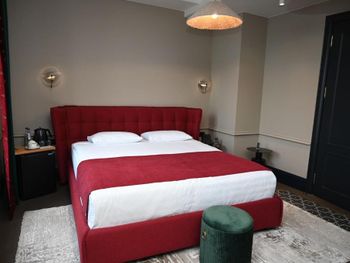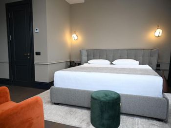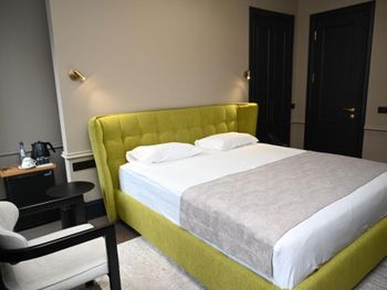 Заселялись поздно - поезд из Тбилиси прибывал в 22.45я встречала нас очень странная девушка, как будто была не совсем в себе. По-английски не говорила, по-русски тоже. Закончив процесс регистрации нас на стойке тут же переключилась на следующих гостей, не выдав ни ключей, ни инструкций куда идти. После эдакого «сорри, а куда ж нам все-таки теперь, встрепенулась и проводила в номер. Дальше было еще интереснее. Мы бронировали категорию «представительский люкс», в описании номера было четко указано про «separate living room”, по факту ее нет и в помине. В ночи разбираться не захотелось, а с утра администратор на чистом глазу утверждал что гостиная зона - это комод с тв и маленькое кресло перед ним. Номер по размеру абсолютно стандартный - зашел и кровать, на обозначенные в описании 30 метров тянет с трудом. Балкон узкий - на ширину одного стула. Подушек на кровати две - самые плоские и простые из возможного. Звонок на ресепшн после заселения с просьбой принести дополнительные подушки - «we don’t have it”. Звонок на ресепшн с просьбой принести колу в номер - обозначено же наличие 24-hour бара - тоже ответ «никого нет». Веселое в номере - шторы. Закрыть окно плотно шторами невозможно - это четыре раздельных узких полотна, которые в развернутом виде едва закрывают стекла окон, а не от стены до стены. Так что темноту сделать и поспать с утра не удастся. Жаль что такие плохие впечатления от сервиса - ибо по дизайну отеля нельзя не отметить что люди думали и хотели сделать красиво. Местами в стенах следы пребывания других гостей - дыры в стенах ) а напор воды в душе действительно хороший, это да