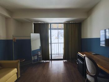В трехместном номере не разойтись 2 людям. Номер очень неудобный. Номер был с балконом, если его можно так назвать))) Балкон примерно 30см, поэтому кофе и чай там попить не получится! Вся мебель и отделка в номере очень простенькие. Стены окрашены в белый цвет и все в потертостях, что неприятно. Одна розетка была в чем-то липком. В номере разбит откос от дверной ручки, так как не установили стопор на дверь. Вокруг двери вся штукатурка осыпалась. В ванной держатель лейки просто не закреплен (видимо сложно подтянуть 1 винт). Всё говорит о том, что никто не следит за номерным фондом. Пол - просто бетон, понять визуально чистый он или нет не представляется возможным, соответственно, ни о каком уюте в номере не говорится. Ощущение, что спишь в коридоре! Завтрак очень скромный, по вкусу очень прост! Спасибо, что омлет с сыром приготовили (но его нужно отдельно просить, никто этого не предлагал). Работал один джакузи и тот который внутри здания, без красивого вида на горы.