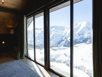 Отель находится в неудобном месте , далеко от new guadauri ( основная зона катания), нужно закладывать дополнительные траты на такси, нас 5 человек возили в одну сторону за 35-40 лари. На завтраках еда скудная, детей кормить нечем, хорошо , что выяснили, что можно заказывать каши! В номерах холодно, из окон Дуло сильно, иногда щели с палец ( закрывали одеждой и туалетной бумагой), в номере запах канализацией , аналогичный запах в джакузи ! Сам джакузи с песочком ( в целом грязно), сауна холодная! Номер сам уставший, стены и мебель пошарпаеы, кровати продавлены, полотенца не свежие ( сильно пахнут хлоркой). В ресторане зона у камина холодная, в помещении градусов 17-18 , сильно дует. Только с детьми можно разместиться в зоне завтраков , подальше от окон. В целом отель вообще далек от 4 звезд и сильно стоимость завышена , за 6 ночей за 2 номера (5 человек) отдали 2500 долларов, что кажется слишком много для такого отеля! И в итоге уехали на 1 ночь раньше, так как погода совсем испортилась и в отеле нечего делать и далеко от цивилизации !не рекомендуем !