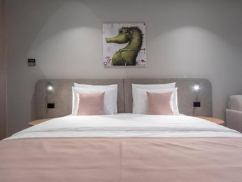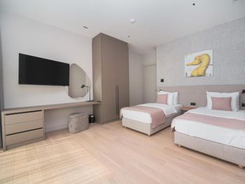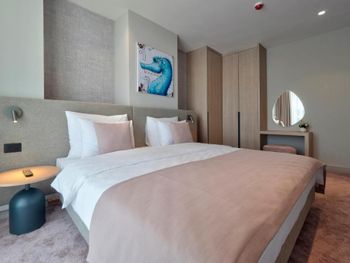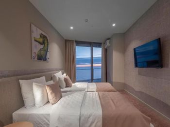 В день заезда прождали 4 часа в холле гостиницы, чтобы потом работник смеясь сказал, что оказывается, он мог нас заселить через час после нашего прибытия. Наши вещи были у них на хранении и они видели, что мы ждём заселения. Вместо этого сотрудник ходил по залу напевая песенки. При бронировании указывал 2 отдельные односпальные кровати и указывал на это в сопроводительном письме. На вопрос почему у нас номер с одной двуспальной кроватью и неудобным креслом (которое разложили как вторую кровать) на ресепшене ответили, что не понимают моих претензий. Ответили мне очень грубо и претенциозно. Номер нам не заменили. В номере плохо убирали, при заселении в постели были волосы, на полу пляжные камни. В общем уровень обслуживания не соответствует ни стоимости, ни указанным 5 звездам.