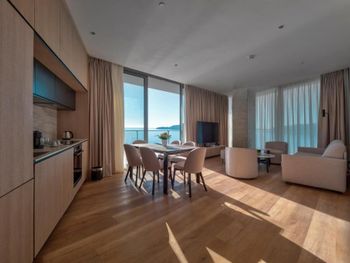 Отель очень удобно размещен возле самого моря. Это конечно приятный момент, что ты вышел и сразу на море. В том числе прекрасно оборудован пляж и приветливый персонал. Пользование пляжем входило в стоимость нашего номера. Ребята всегда помогали с лежаками и зонтиками. Очень вкусный и разнообразный завтрак. Всегда можно было выбрать что-то, что именно тебе подходит или сегодня хочется. В целом такой же неплохой ресторан. Прекрасно работающий room service. По номеру общие впечатления хорошие, но есть нюансы. Сам номер очень большой, чистый, невероятно огромная терраса с видом на море заслуживает особого упоминания. Огромная ванна с очень классным душем. Всегда была теплая вода, каждый день была уборка и меняли полотенца. Но невозможно было пользоваться кондиционером, потому что при его включении у нас жутко воняло канализацией. Именно запах общественного туалета где-то на трассе. На четвертый день пребывания я проснулась в 2 ночи от этого ужасного запаха. Выключила кондиционер, открыла дверь на веранду и через пол часа только смогли снова уснуть. Проверяли на следующий день, вонь появлялась именно при включении кондиционера. И наш номер был смежным с другим через закрытую дверь. Шумоизоляция хорошая, вопросов нет. Но вот наши веранды были разделены красивыми растениями в виде забора, поэтому как только соседи выходили покурить, можно было задохнуться. Потому что это все происходило именно под нашей открытой дверью. Кондиционер включить невозможно, как вы помните. Есть мелкие дефекты после ремонта, например выпадающая лампочка с потолка. Не то чтобы это мешало, но в целом в глаза бросается. Если по кондиционеру решите вопрос, с радостью приедем еще. Отель очень красивый, персонал прекрасный. Очень приветливый, отзывчивый. Время провели великолепно, спасибо ❤️