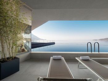 Замечательное местоположение. Прекрасный завтрак. Свой пляж, где всегда есть места. Чудесный вид с террасы. Маленький, но не переполненный людьми СПА.
