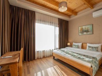 Замечательный отель. Небольшая, очень ухоженная территория, где расположилось всё очень удобно. Хороший бассейн с лежаками, зонтиками, полотенцами. Просторные номера. В номере всё необходимое, включая халаты и тапочки. Ресторан с видом на долину и горы. Большое меню. Мы отдыхали 2 ночи компанией друзей. Всё очень понравилось. Большое спасибо персоналу за приветливость, гостеприимство и отличный сервис. Очень рекомендую!